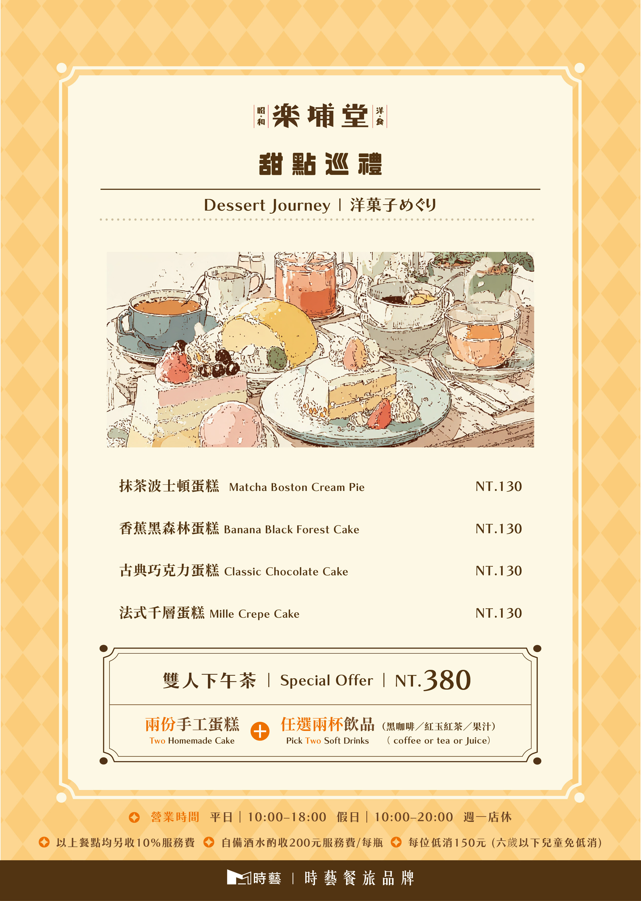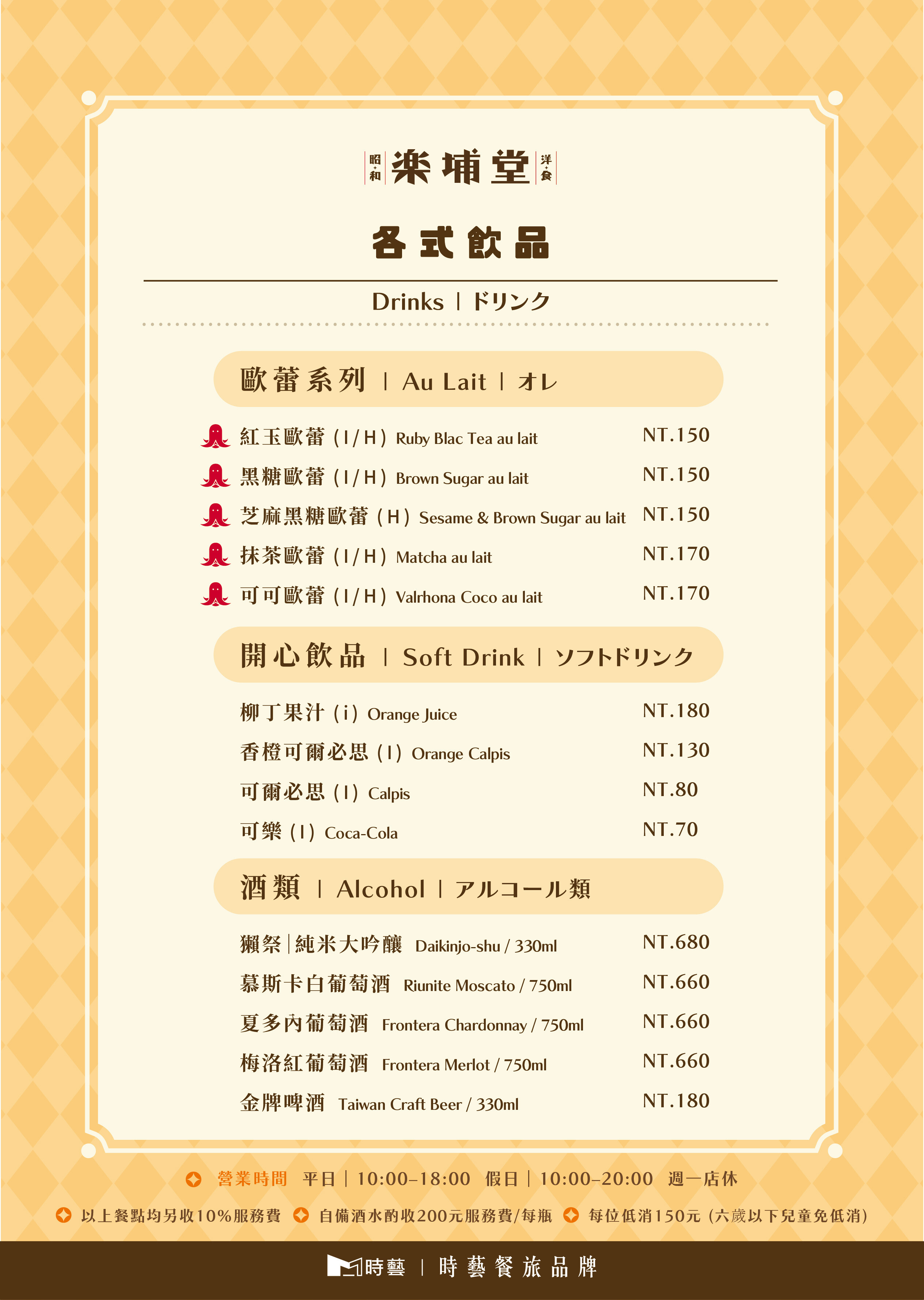 訂位專線:03-332-1168 營業時間: 平日 10:00~18:00 假日 10:00~20:00 (週一店休、連續假日除外)